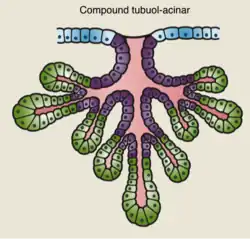 Todo el tejido excretor de leche que descarga en un único ducto se denomina "glándula mamaria simple". Se define como "glándula mamaria compuesta" al total de las glándulas mamarias simples que abastecen un pezón.