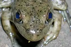 Los anuros (ranas y sapos) disponen de un órgano frontal equivalente al ojo parietal de los reptiles, conectado a la glándula pineal por el nervio frontal. Ambas estructuras disponen de células fotorreceptoras de características similares. Los caudados (salamandras y tritones) y los gimnofiones (cecilias) no cuentan con órgano frontal. [31]