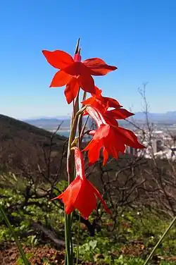 Gladiolus watsonius es una especie de gladiolo que se encuentra en las laderas de granito en la provincia Occidental del Cabo, Sudáfrica.[1]