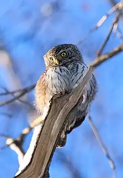 El mochuelo alpino[2] o mochuelo chico (Glaucidium passerinum) es una especie de ave rapaz de la familia Strigidae, que se distribuye por el norte boreal de y por las montañas del centro de Europa, así como por Siberia y el norte de China. Su población se estima entre 100.000 y 500.000 ejemplares.[1] Habita en bosques de coníferas o mixtos, teniendo predilección por los bosques viejos de píceas y abetos.[3]
