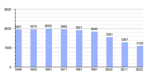 Hasta 2022 la población era de 1102 habitantes,[3] con una densidad de población de 59,02 habitantes por kilómetro cuadrado.[3]