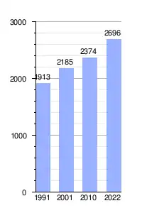 En el censo 2022 la localidad mantuvo su ritmo de crecimiento con 2696 habitantes y 1269 viviendas. Además, el censo dio a conocer datos de su composición poblacional (1313 hombres 1287 mujeres), población urbana sin población rural dispersa o localidades dispersas en el municipio (2600) densidad y área urbana.[3][4]