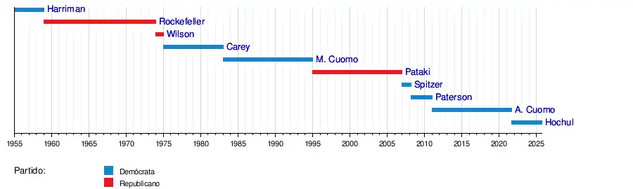 | 56 | Andrew Cuomo[13] | 1 de enero de 2011 | 24 de agosto de 2021 | Demócrata | Robert Duffy |