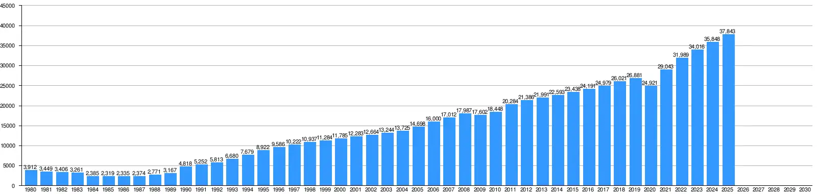 durante el periodo 1980-2030 (en dólares estadounidenses)