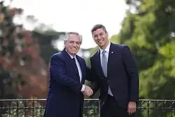 - ↑ «Milei recibió al presidente paraguayo Santiago Peña». Télam. 9 de diciembre de 2023. Archivado desde el original el 2 de marzo de 2024.