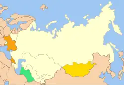 El 9 de abril de 1991, Georgia proclamó su independencia. A partir del 20 de agosto se sucedieron otras independencias: Estonia en 20 de agosto, Letonia el 21, Ucrania el 24, Moldavia el 27, Azerbaiyán el 30 y Uzbekistán el 31. Tayikistán el 9 de septiembre, Armenia el 23[64]. Azerbaiyán el 18 de octubre, y Turkmenistán el 27. Bielorrusia suspendió en su territorio las actividades del Partido Comunista a partir del 24 de agosto[65].