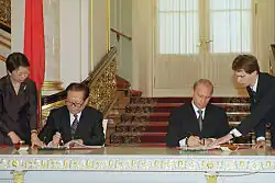 El 8 de diciembre de 1991, se hizo público la firma del Tratado de Belavezha por tres presidentes de las repúblicas de la URSS de Bielorrusia, Rusia y Ucrania, en el bosque de Białowieża, cerca de Minsk y que implicaba el final oficial de la URSS[71]: