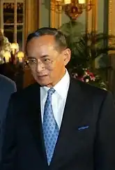El rey de Tailandia hasta el 13 de octubre de 2016 fue Bhumibol Adulyadej (o Rama IX) y es uno de los monarcas con el reinado más largo de la Historia y fue el rey con más tiempo en el trono de su país, pues estuvo en el trono desde 1946 hasta su fallecimiento en el año 2016. Actualmente el rey es Vajiralongkorn (Rama X), que ascendió al trono de Tailandia el 13 de octubre de 2016. La Constitución de Tailandia estipula que si bien la soberanía del Estado está investida en el pueblo, el rey puede ejercer tales poderes a través de tres ramas del gobierno. Como monarca constitucional, el poder del rey está limitado a uno simbólico; sin embargo, la institución mantiene gran cantidad de respeto y reverencia del pueblo tailandés.[1]