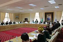 El sistema político turcomano es heredero directo del establecido durante el periodo soviético, y en teoría emana de la Constitución de Turkmenistán aprobada en 1992. En teoría, Turkmenistán es una república presidencialista.