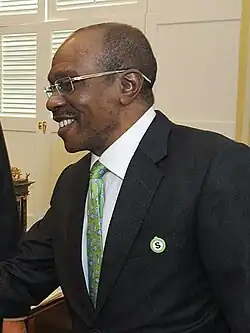 Godwin Emefiele es el actual Gobernador del Banco Central de Nigeria (CBN) desde el 3 de junio de 2014.[3] Previamente trabajó como director ejecutivo y director general del Grupo Zenith Bank, banco del que también fue director general adjunto. Desde 2001 ha sido director ejecutivo de Banca Corporativa, Tesorería, Control Financiero y Planificación Estratégica de Zenith Bank Plc.[4]