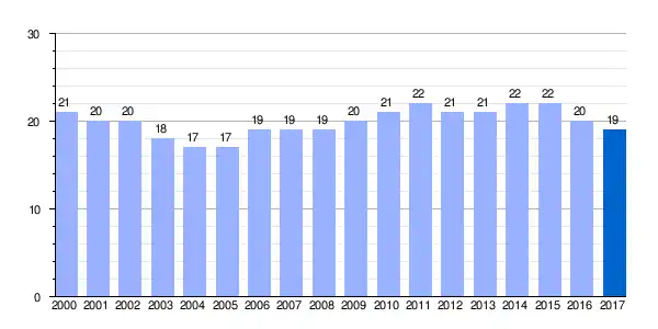 | Gráfica de evolución demográfica de Gojáin[3] entre 2000 y 2017 |