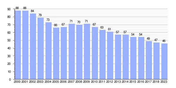 | Gráfica de evolución demográfica de Golan[2] entre 2000 y 2023 |