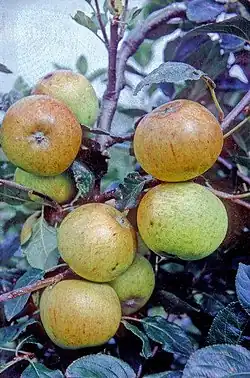 - ↑ Hampson, Cheryl R.; Kemp, Henk (2003). Apples. Botany, Production and Uses, ed. Characteristics of Important Commercial Apple Cultivars. CABI Publishing. pp. 62. ISBN 0-85199-592-6.