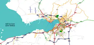 | Subdivisión | Distritos de Foça, Menemen, Çiğli, Karşıyaka, Konak, Narlidere, Güzelbahçe, Urla y Karaburun | |