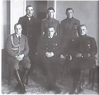 ![]() El almirante Kolchak, entonces Ministro de Guerra del Gobierno Provisional Panruso, y su círculo íntimo (1918) | ||