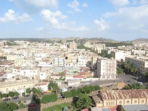 Vista panorámica de Asmara, ciudad a la que llegó el emperador Haile Selassie al enterarse del golpe. | ||