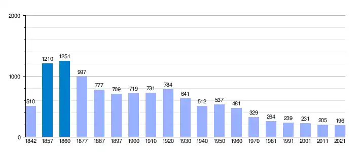 | Gráfica de evolución demográfica de Gombreny[5] entre 1842 y 2021 |