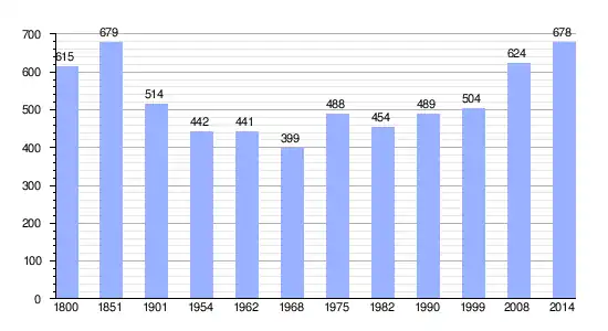 | Gráfica de evolución demográfica de Gommerville entre 1800 y 2014 |