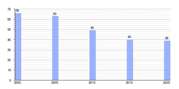 | Gráfica de evolución demográfica de Gondrame (aldea) entre 2000 y 2020 |