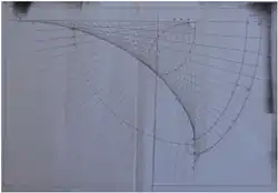 El diseño de la forma del carril, puede hacerse teniendo en cuenta que su evoluta es la directriz tangencial. Puede obtenerse su forma analítica por los procedimientos habituales en cálculo o bien gráficamente, ajustando su trazado continuo por medio de su evoluta previamente construida, como describe su inventor en la patente por medio de la imagen de la figura 4.