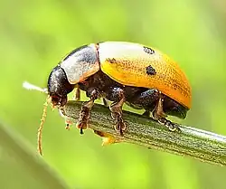- Esta obra contiene una traducción parcial derivada de «Gonioctena variabilis» de Wikipedia en alemán, concretamente de esta versión, publicada por sus editores bajo la Licencia de documentación libre de GNU y la Licencia Creative Commons Atribución-CompartirIgual 4.0 Internacional.