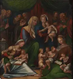 Lamentablemente, ninguna de las numerosas obras documentadas se ha conservado a excepción, quizá, del retablo mayor de Villar del Águila en el que pudo colaborar con su padre, aunque la documentación al respecto es confusa.[3] Esas pinturas permiten identificar el estilo de Gonzalo, basado sustancialmente en el paterno aunque con recuerdos rafaelescos más avanzados, como se advierten en el retablo de la Santa parentela del Palacio Episcopal de Cuenca, en el que el grupo de la Virgen con el Niño tiene como modelo el mismo grupo en la Virgen del pez del maestro de Urbino, ahora en el Museo del Prado.[4]