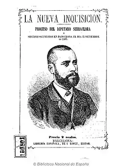 Sobre los sucesos del 25 de septiembre de 1869 y su participación en las agitaciones de carácter republicano federal ocasionadas por la disolución de la Milicia Nacional,[5][6] origen del juicio en consejo de guerra al que fue sometido, él mismo, exiliado en Beaucaire, firmó el 1 de enero de 1870 y publicó su versión de los sucesos con el título en cubierta La nueva Inquisición. Proceso del diputado Serraclara y sucesos ocurridos en Barcelona el día 25 de setiembre [sic] de 1869 (Barcelona, Librería Española de I. López, Editor, 1870).[7] Diciéndose hombre de ley y de derecho, explicaba como raíz del problema la actitud de los progresistas que para poner freno a la revolución, una vez en el poder, trataban de acabar con los republicanos, provocándolos a la insurrección: