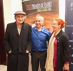 Gonzalo Uriarte (izquierda) con Avelino González (centro) en la entrega de Premios María Casares 2014. | ||