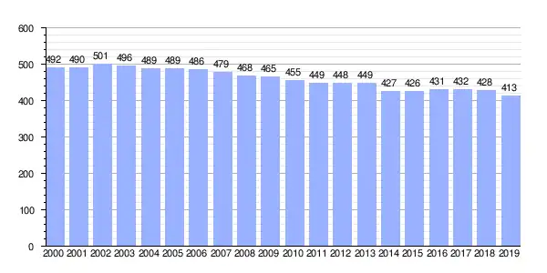| Gráfica de evolución demográfica de Gonzar entre 2000 y 2019 |