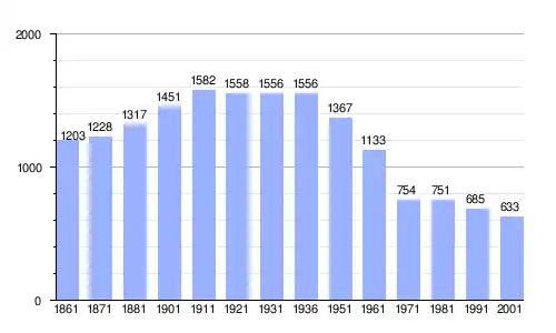 | Gráfica de evolución demográfica de Goriano Sicoli entre 1861 y 2001 |