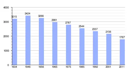 | Gráfica de evolución demográfica de Gorna Mitropoliya entre 1934 y 2011 |