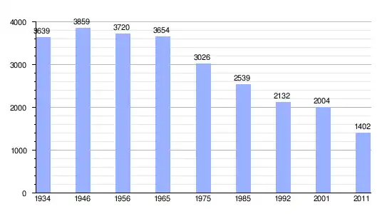 | Gráfica de evolución demográfica de Gorni Dabnik entre 1934 y 2011 |