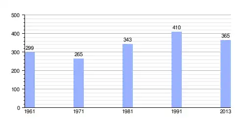 | Gráfica de evolución demográfica de Gornja Misoča entre 1961 y 2013 |