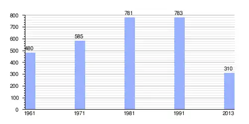 | Gráfica de evolución demográfica de Gornji Bešpelj entre 1961 y 2013 |