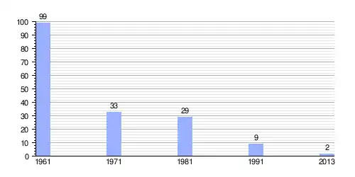 | Gráfica de evolución demográfica de Gornji Bogovići entre 1961 y 2013 |