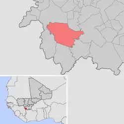 Se encuentra ubicada al suroeste del país, al sur de la capital nacional, Bamako, y cerca de la frontera con Costa de Marfil y República de Guinea.