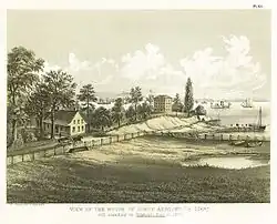 Vista de la casa de Simon Aertsen De Hart, todavía en pie en Gowanus Bay en 1867
