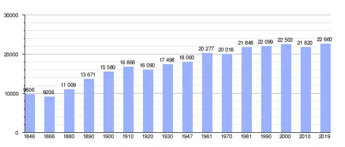 Todos los datos históricos relativos al actual municipio, el siguiente gráfico refleja su evolución demográfica, incluyendo municipios después de efectuada la fusión el 1 de enero de 1977.