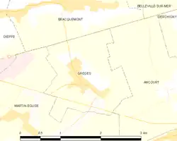 Grèges es una población y comuna francesa, en la región de Alta Normandía, departamento de Sena Marítimo, en el distrito de Dieppe y cantón de Dieppe-Est.