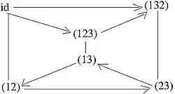 - El grafo de Cayley no es independiente del conjunto de generadores que se toma. Es decir, que tomando dos generadores distintos obtenemos en general grafos no isomorfos. Vea por ejemplo las imágenes a la derecha donde se muestran dos grafos de Cayley distintos, ambos correspondientes al grupo simétrico S3.