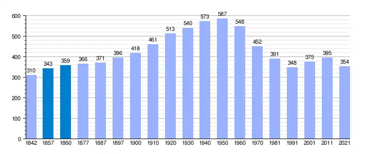 | Gráfica de evolución demográfica de Graja de Iniesta[4] entre 1842 y 2021 |