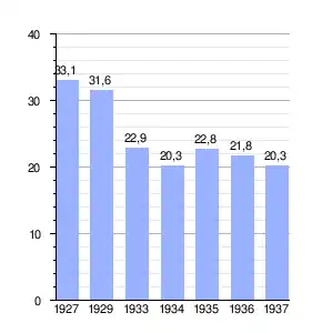 A la vez, el comercio con Alemania, muy relevante, se redujo también extraordinariamente, cayendo las exportaciones en un 82,1 % en 1933 frente a las de 1929.[5]