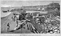 Sin embargo, la insistencia en pruebas de calificación más rigurosas llevó a huelgas de "trabajadores de socorro" en la Presidencia de Bombay.[2] En enero de 1877, Temple redujo el salario por un día de duro trabajo en los campos de ayuda en Madras y Bombay[11]—este 'Temple wage' consistía en 1 libra (453,6 g) de grano más un anna para un hombre, y una cantidad ligeramente reducida para una mujer o un niño que trabaja,[12] para un "largo día de trabajo duro sin sombra ni descanso".[13] La razón detrás del salario reducido, que estaba de acuerdo con la creencia prevaleciente de la época, era que cualquier pago excesivo podría crear 'dependencia' (o "desmoralización" en el uso contemporáneo) entre la población afectada por la hambruna[11]