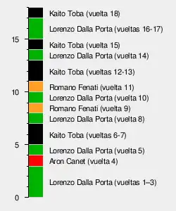 | 24 | 69 | KTM | 15 | +3 vueltas | 26 | ||