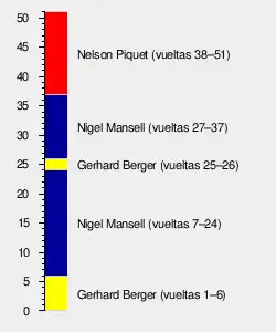 | 5 | 20 | Benetton-BMW | 50 | + 1 Vuelta | 4 | 2 | |