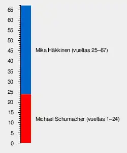 1 8 Bandera de Finlandia Mika Häkkinen McLaren-Mercedes 67 1:32:15.2 3 10