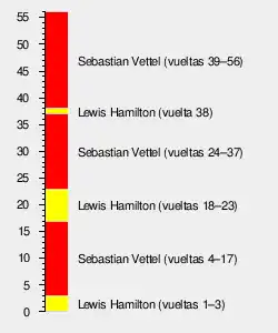| 9 | 26 | 55 | +1 vuelta | 5 | 2 | ||
