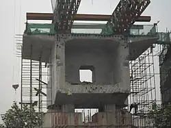 - ↑ Voussoirs préfabriqués posés à la poutre de lancement en Structurae