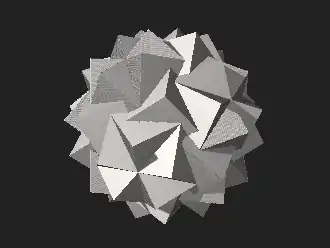 poliedro no convexo, poliedro de caras uniformes, poliedro dual y hexecontaedro | |