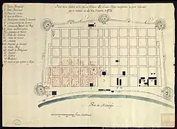 - ↑ «MP-FLORIDA_LUISIANA,150BIS - Plano de Nueva Orleáns con representación de los daños del incendio de 1794.». PARES. Consultado el 6 de junio de 2023.
